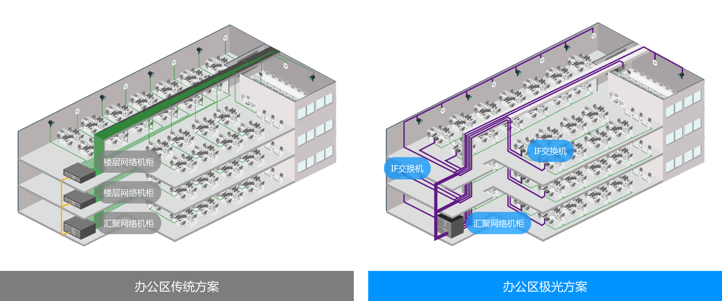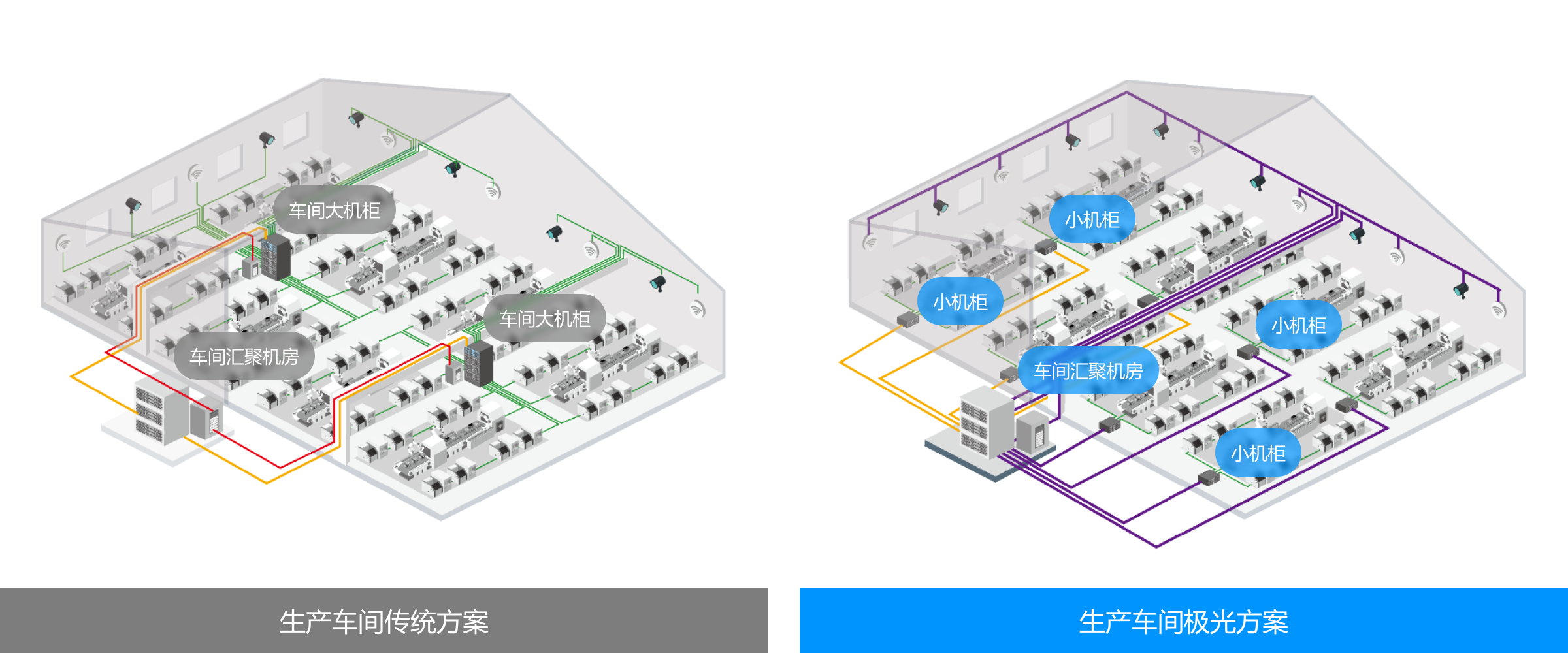 - 厂区面积大,机柜分散,POE交换机端口利用率低,资源浪费,建网成本虚高