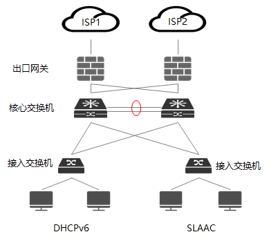 核心交换机需要承载DHCPv6终端以及SLAAC终端的网关工作,所以属于混合场景;