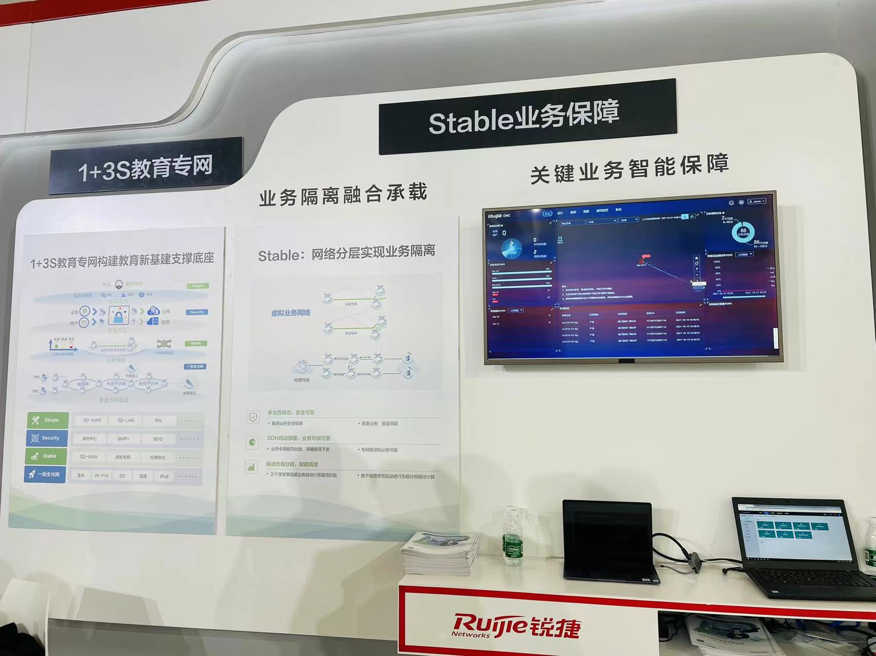 基于这个思路,尊龙时凯在本届展会上展示了倾力打造的“1+3S”教育专网解决方案,以1张网(一张全光网络)加3个S,即:稳定运行(Stable)、安全可信(Security)、简单运维(Simple)来全面满足教育新基建对教育专网建设的要素要求,适应教育应用不断增加、IPv6政策要求以及智慧校园建设等需要。
