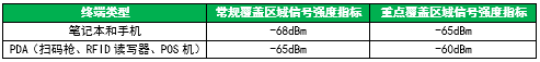 ▲表3:不同类型终端推荐信号强度指标