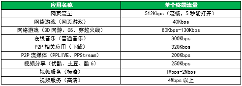 ▲ 表4:办公场景下常见应用单个终端需要的带宽情况