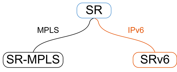 SR技术支持应用在MPLS和IPv6两种转发平面。应用在MPLS转发平面的SR称为SR MPLS(Segment Routing MPLS),其SID就是MPLS标签。应用在IPv6转发平面的SR称为SRv6,其SID为IPv6地址形式。