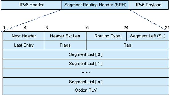 1. (3)    位于SRH中最后的Option TLV(Type Length Value)字段,也可以用于自定义功能,比如在转发时可以封装一些非规则信息。