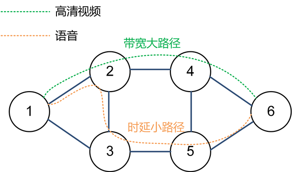 1. (1)    可以自定义业务转发路径。路径SID根据业务需要编排Segment List,形成不同的转发路径。如下图所示。