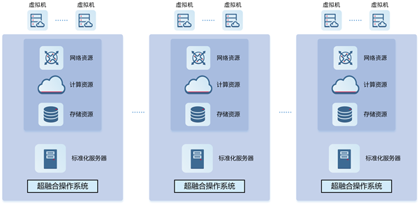 超融合架构是指采用软件定义技术,将计算资源、存储资源和网络资源等与专用硬件解耦,实现基础架构级别的融合。在超融合架构下,同一套设备中不仅仅具备计算、存储、网络和服务器虚拟化等资源和技术,还包括存储管理、数据保护、镜像同步和在线数据压缩等功能,并且多套设备之间可以通过高速网络聚合,实现模块化的无缝横向扩展,最后形成统一的资源池。
