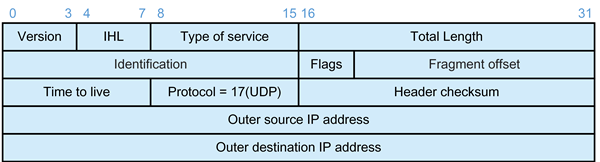 ○Outer Source IPv4 Address:VXLAN隧道本端VTEP的IP地址。VTEP为VXLAN隧道两端的设备。