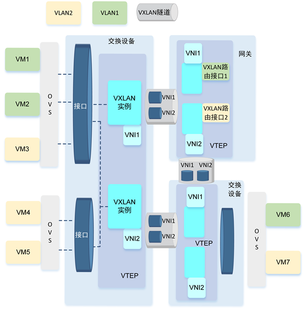 (2)交换设备通过子接口或者是VLAN ID方式识别不同网段虚拟机流量,并与对应的VXLAN实例进行绑定。